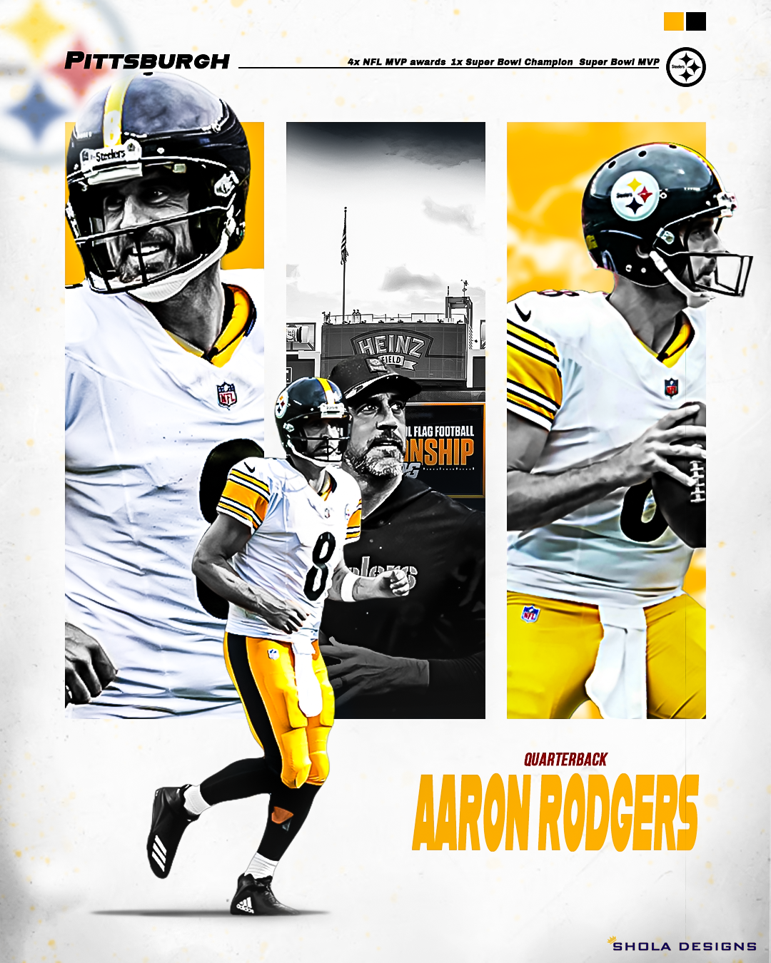 Aaron Rodgers is a 41-year-old veteran NFL quarterback, now leading the Pittsburgh Steelers.