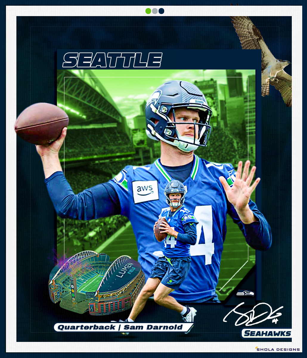 Sam Darnold is a seasoned NFL quarterback currently playing for the Seattle Seahawks.